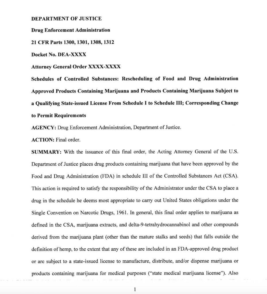 The U.S. government is officially moving to reclassify marijuana from a Schedule I drug the same category as heroin — to Schedule III, a group that includes substances with accepted medical use.