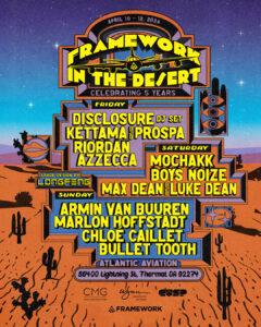 It’s a deliberately wide-ranging bill — Disclosure and Armin van Buuren sharing a weekend with Boys Noize and Mochakk is the kind of cross-pollination that only really works when the venue and production can hold it all together. Framework In The Desert has earned that credibility.