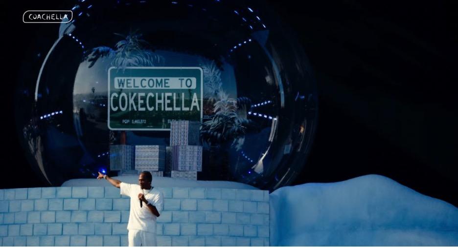 The crowd erupted into screams when the Clipse rapper entered the Main Stage wearing nothing but white. He stood in front of a giant “Welcome to Cokechella” sign that was hung at the back of the stage while singing the first few notes of “Let The Smokers Shine The Coupes.”