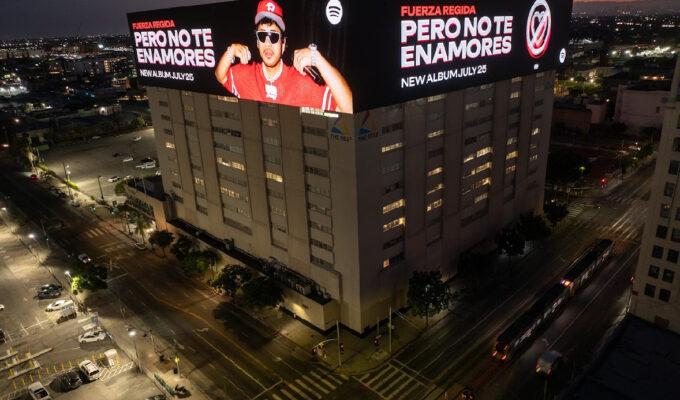 Led by their smooth-voiced singer Jesús Ortiz Paz, regional Mexican outfit Fuerza Regida has been climbing charts on both sides of the border. Today, the Platinum-selling grupo announces “Pero No Te Enamores Tour,” their next headlining tour. Produced by Live Nation and kicking off on June 6th in Austin, TX, the “Pero No Te Enamores Tour” takes the group across North America for a series of dates, including shows in Atlanta, New York, Houston, and more, before closing with a show in Inglewood, CA. The 5-man group saluted their hometown fans with a special mural in their native San Bernardino, CA, displaying the tour artwork and dates in the center of the city.