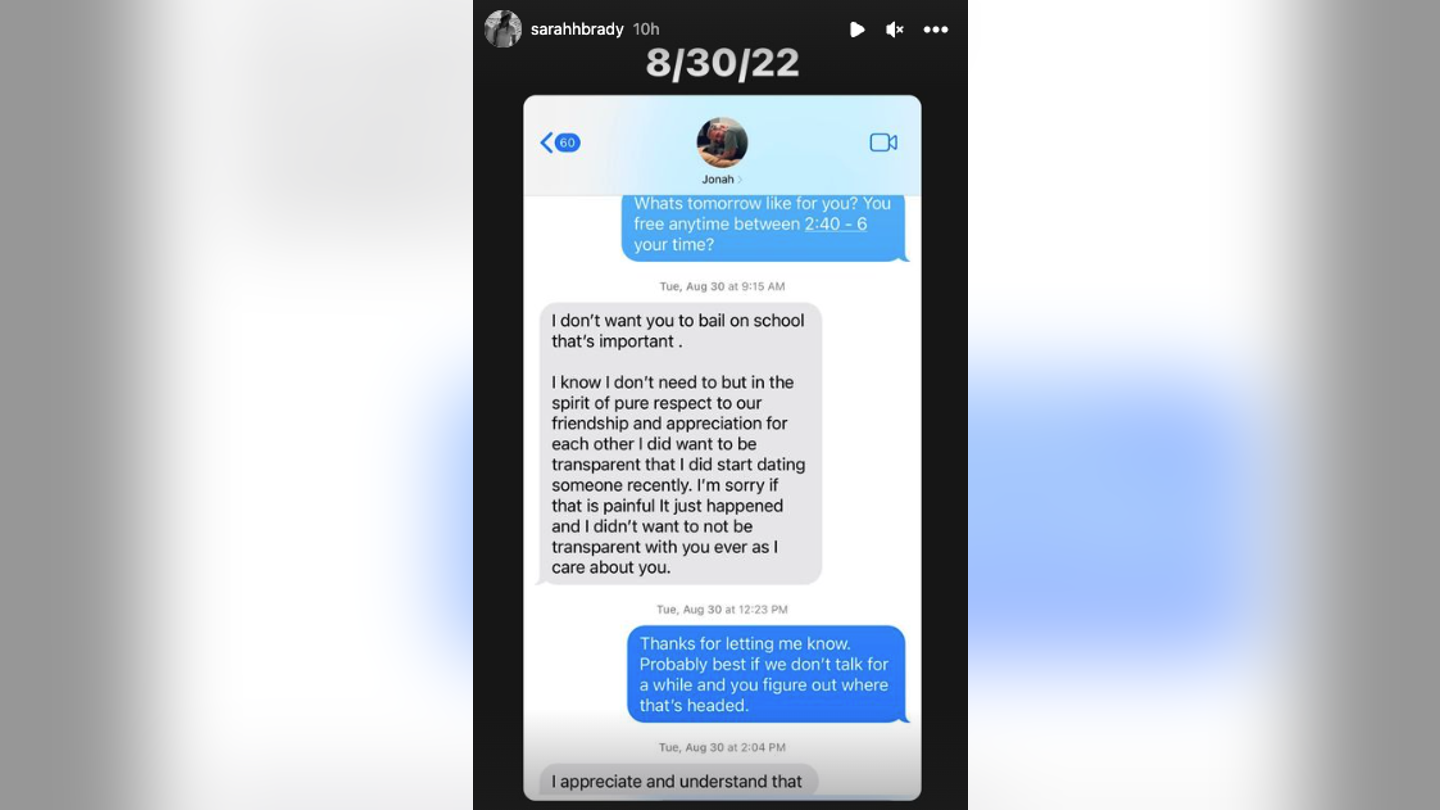 The screenshots, which were posted to Brady’s Instagram Story, show Hill and Brady discussing their relationship in August 2022. In the messages, Hill tells Brady that he is starting to date another woman, and Brady expresses her hurt and confusion.