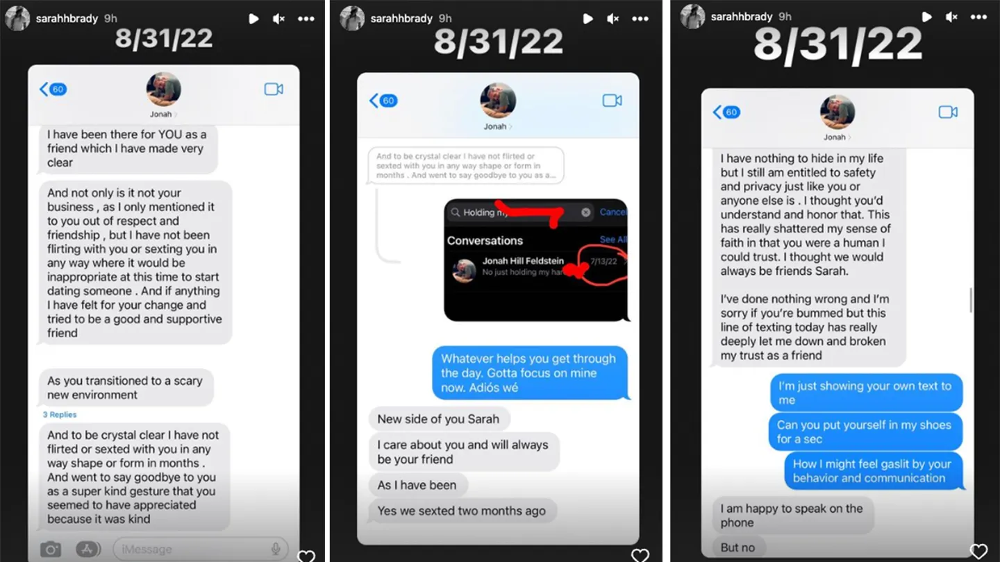 Jonah Hill and Sarah Brady’s Feud continues With New Text Messages