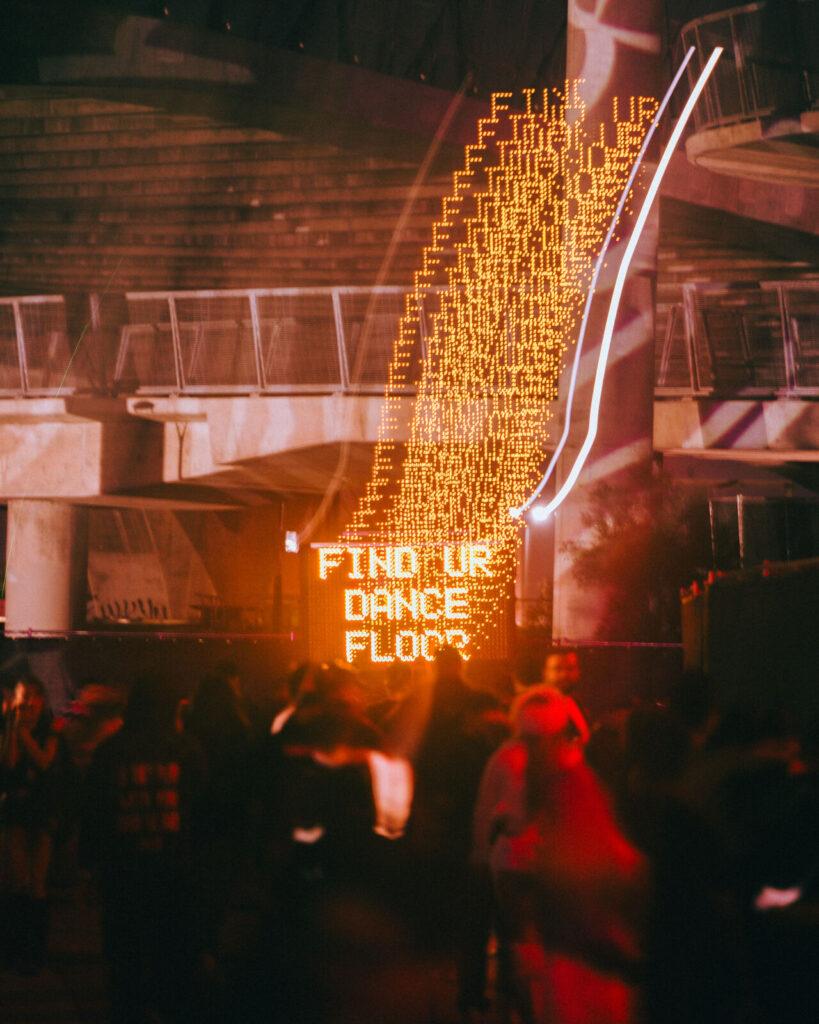 “Find Ur Dance Floor” — signage guiding the way. Photo by Brandon Densley for Skyline