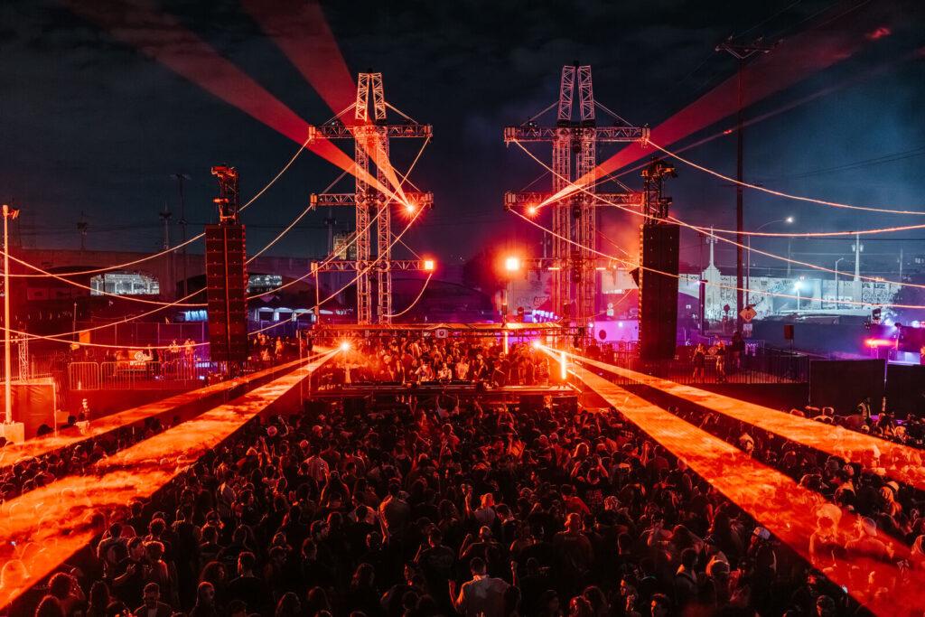 What also makes this location special is the neighborhood itself. If you know LA’s dance music scene, you know that when the clubs shut down at 2 a.m., the night is far from over. The Boyle Heights and Arts District corridor has long been the home of underground warehouse raves and after-hours parties—the kind where you follow a friend’s text to some unmarked door in an alley. Walking out of the festival on Saturday night, the evidence was everywhere: I counted at least three separate alleyways nearby with long lines of people waiting to get in. I couldn’t tell you who was playing, but clearly some big names were hosting afterparties in the surrounding warehouses. For the first time, Skyline itself also hosted official afterparties inside Ace*Mission’s own warehouse—a smart move that kept the energy going on-site and felt like a nod to the very culture that built this neighborhood’s reputation.
