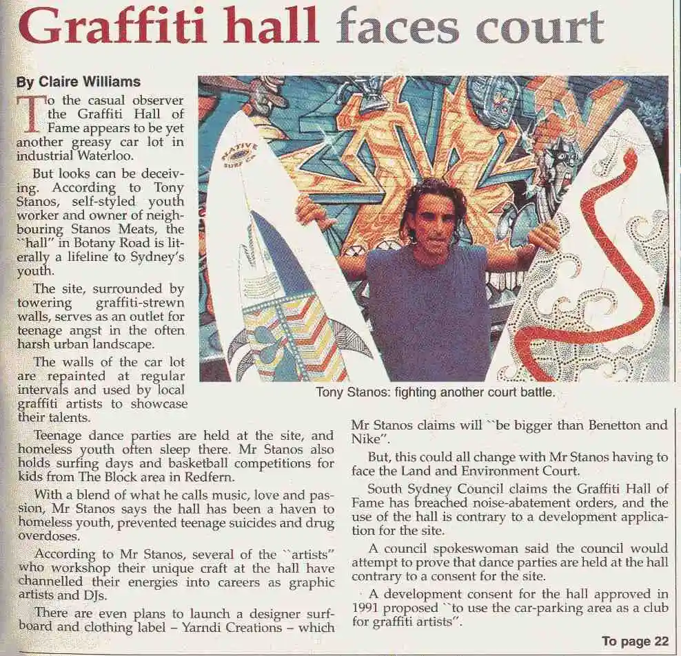 In the early 90s, Tony Spanos used his wealth to create a community hub, immortalised in Sydney rave history, as “The Graffiti Hall Of Fame”: A two-story car park next to a family-owned meatworks in Sydney’s Alexandria.